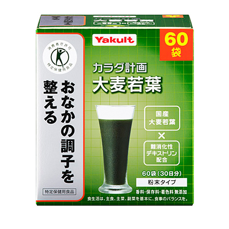 ヤクルトヘルスフーズ大麦若葉 300g(5g×60袋) 3,240円 大分県産大麦若葉に食物繊維を配合した、おなかの調子を整えるトクホの青汁 全成分大麦若葉エキス末(大麦若葉(国産)、水溶性食物繊維、デキストリン)、水溶性食物繊維 ご注文はコチラ -